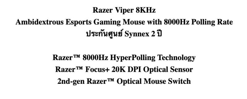Razer Viper 8KHz – Ambidextrous Wired Gaming Mouse ประกันศูนย์ Synnex 2 ปี